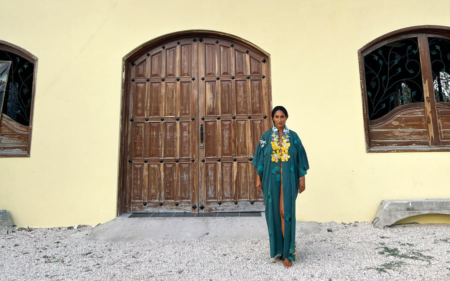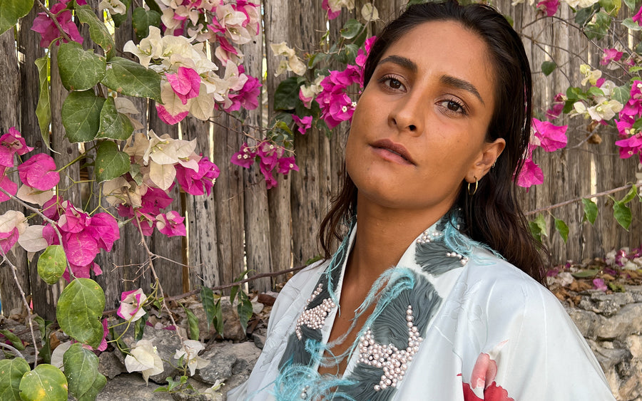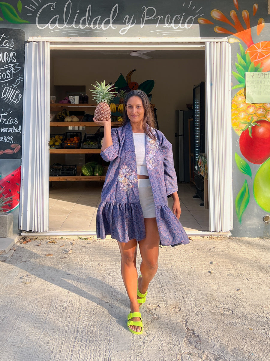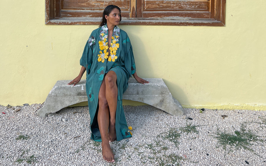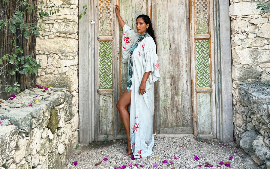 When more is more, this one of a kind kimono features all over hand and machine embroidery as well as sequins, feathers and beads. We took the original antique floral embroidery, and replicated it all over the entire kimono. The full length of...